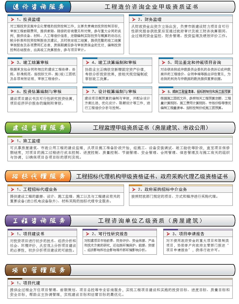 我司是上海市较早开展造价咨询、工程监理、招标代理和工程咨询业务的单位之一。早在1988年8月取得工程招标代理甲级资质;